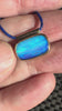 A stunning Winton boulder opal is featured in this one of a kind, timeless necklace. Measuring 12.8 x 8 mm this 3.52 carat opal beauty displays an overall ombre hue that transitions from a deep indigo to a soft sky blue. Woven across its surface is a delicate scattering of mint green and periwinkle flashes. Framed in a 10k gold setting, with a sterling silver back, and suspended from an 18" strand of delicate 1mm, smooth, lapis lazuli gemstones that accentuates the opals stunning internal sparkle. Worn alone or within a mix, this captivating piece is the perfect addition to your collection.